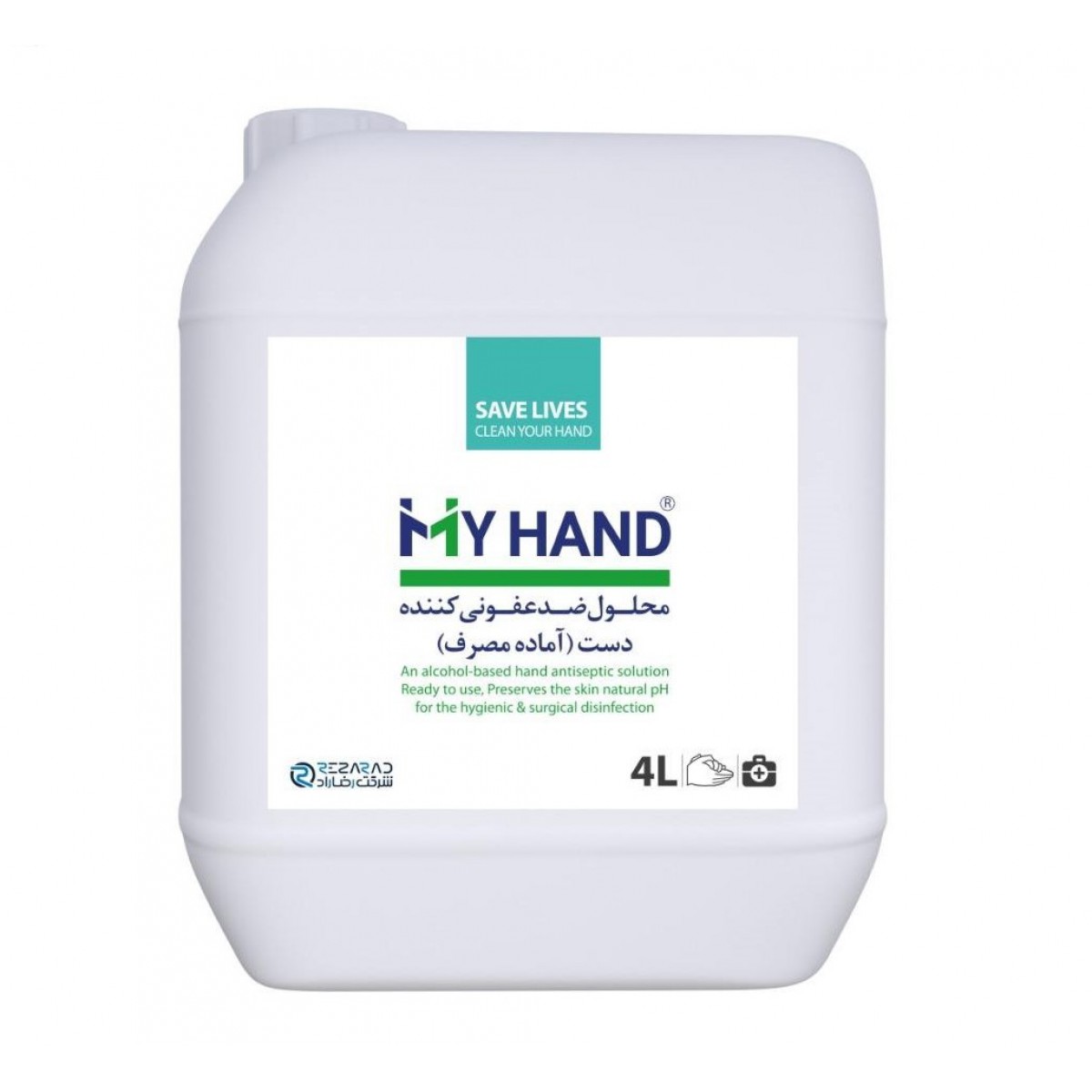 محلول ضدعفونی کننده دست برند رضاراد در حجم 4 لیتری عرضه می گردد.